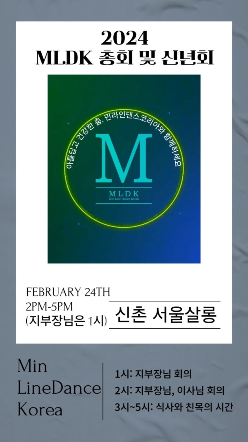 민라인댄스코리아는 영문 Minlinedancekorea의 약자로 MLDK가 쓰여지고 있습니다.